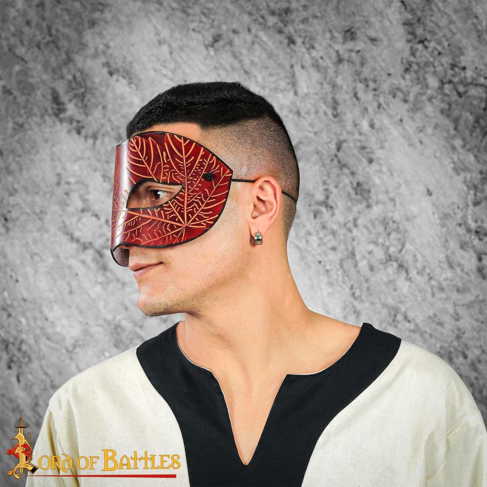 Handcrafted and well-designed from durable genuine leather, this mask has an elite crimson hue to it. To adjust it according to your fit, a genuine leather cord is fastened to the mask.