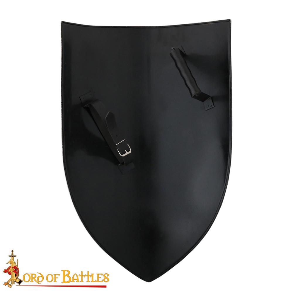 - Fits Arm Size: 38 cm – 53.3 cm (15 in – 21 in)The Medieval Right Handed Steel Heater Shield Blank offers you the perfect opportunity to unleash your creativity while embracing a time-honored aesthetic. At 28 inches in length and 20 inches in breadth, this sturdy shield is crafted from meticulously hand-forged 18 gauge MILD STEEL, ensuring that it not only looks impressive but is also durable enough to withstand the tests of time.Whether you’re an artist looking to create a striking wall display or an enthusiast of medieval decor wishing to add an authentic touch to your collection, this shield is the ideal choice. Its historically inspired design serves as a beautiful backdrop for your own distinct art, inviting you to paint, engrave, or embellish it as you see fit. The combination of its clean lines and robust surface provides ample space for creative expression, allowing you to transform a simple shield into a stunning piece of art that reflects your personality and style.