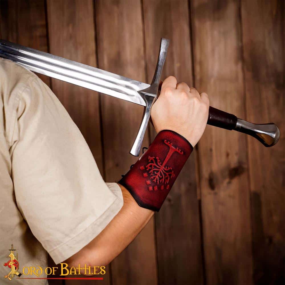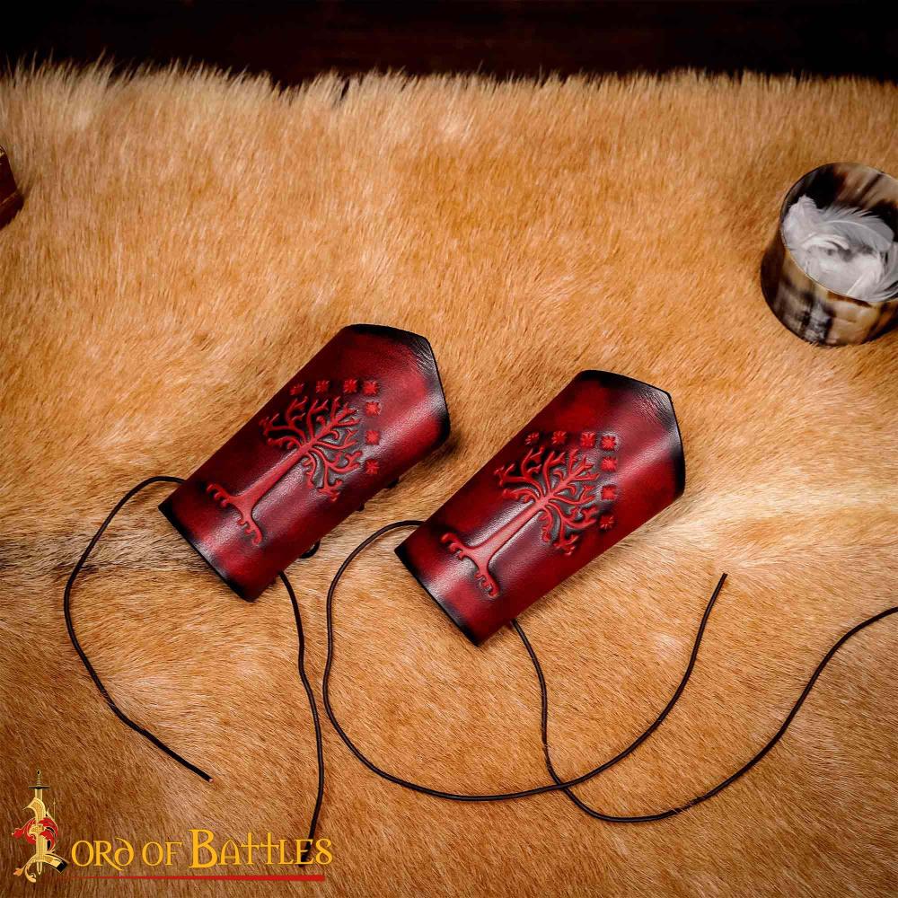 Everyone knows you are the best archer of Gondor when they see these Tree of Gondor leather bracers fastened around your forearm; after all, the Steward himself honoured you with this gift!