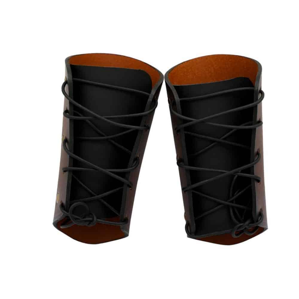 These Viking Bracers are crafted from tough and thick genuine leather and boldly features the Norse Mjolnir Hammer in richly embossed detailing. The bracers are laced to the forearm with an included set of leather cords.