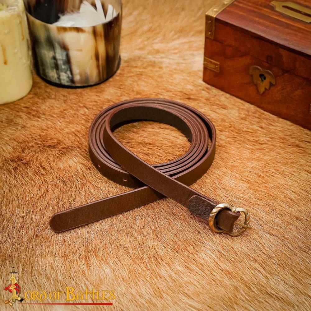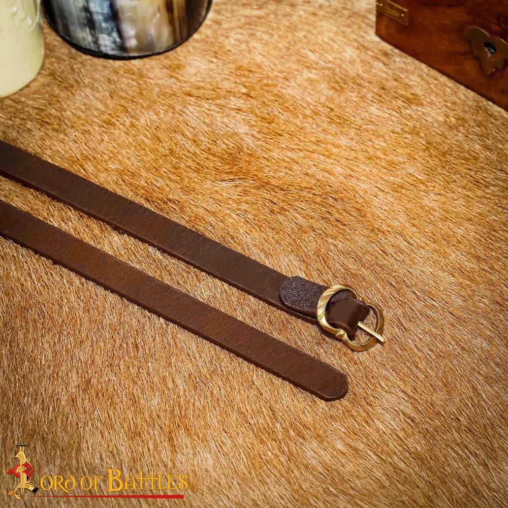 Lord of Battles – Thin Medieval Belt with Solid Brass Buckle – Brown