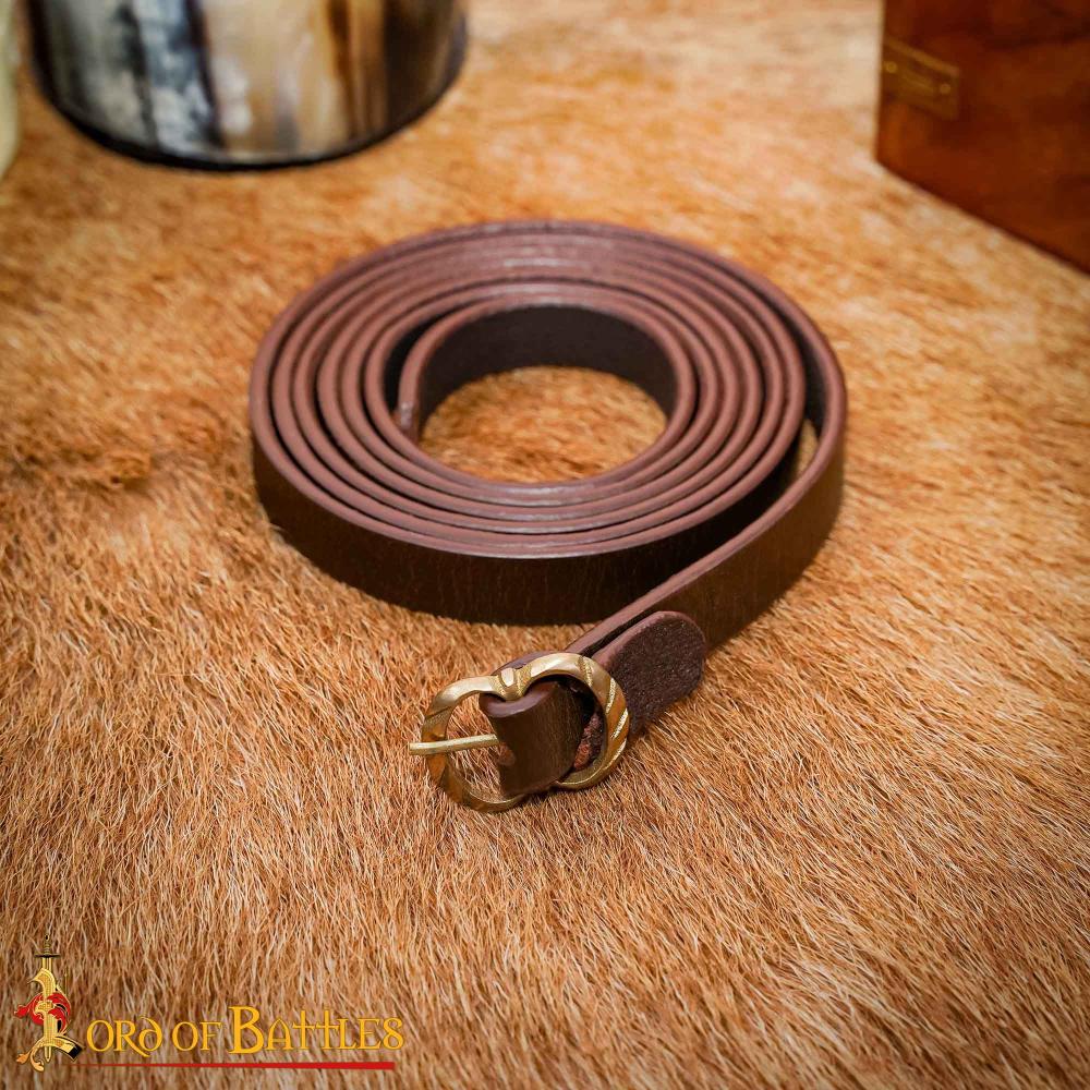 Clothing   »  Belts, Baldrics & Buckles   »  Lord of Battles – Thin Medieval Belt with Solid Brass Buckle – Brown