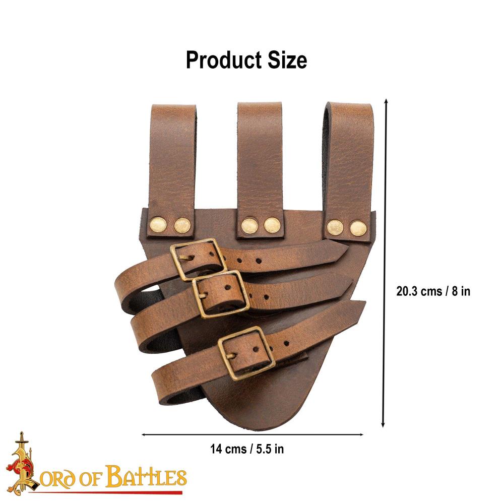 Handmade with genuine buff leather, this sword frog boasts a thickness of 3-3.3 mm, providing both durability and an authentic touch that you can feel. The ethical sourcing of this leather means you are not only investing in quality but also in sustainability. Featuring a classic tri-strap construction, each of the three loops is meticulously riveted to the main body, ensuring that your sword remains secure no matter the intensity of your movements. Its dimension of approximately 8 x 5.5 inches offers a perfect fit for your blade, making it an essential addition to your sword-carrying arsenal.