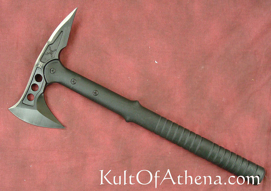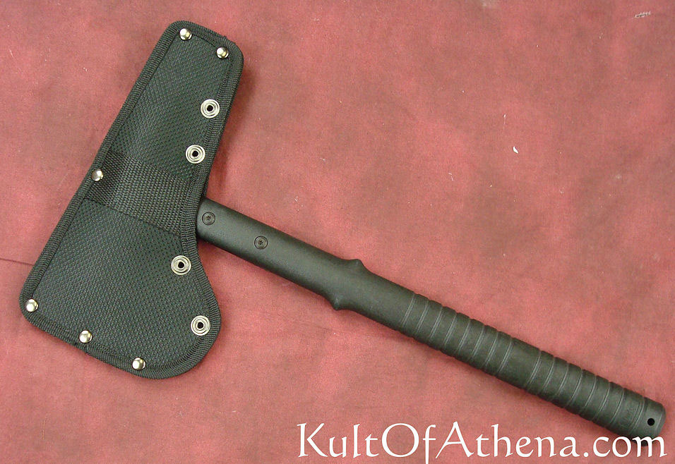 more tactiCOOL than tactical I found the grid to be rather uncomfortable and felt that it did not grip my hand very well at all. And the axe head is obviously made for for construction than for fighting. And if you are wondering if the hook on the axe head is large enough to grab a opponents limbs or neck, no, it is rather small actually. The back spike is really the only thing I enjoyed about this weapon. It is good for camping, though. I would recommend using it for that.