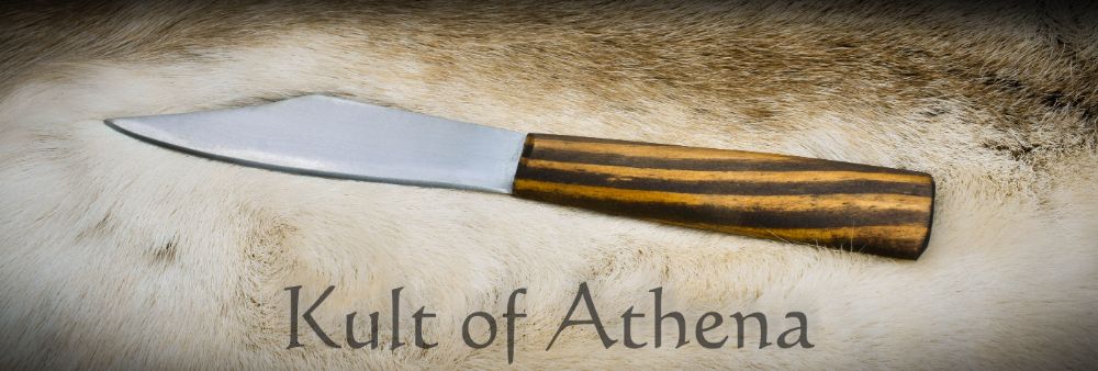This robust bladed seax is the so-called broken-back style seax. These seaxes have a sharp angled transition between the back section of the blade and the point. This shape makes the spine appear to be broken like a beast with a broken back which is where this evocative blade style gets its name. Knives or Seaxes such as these were common in Viking age Britain and Ireland, although some examples have been found in archaeological digs in Germany and have been dated around 8th-11th century. Knives like these were used every day just as the smaller knives were, however, they were substantial enough to have proven useful if your main weapon was lost during combat or during an unexpected mead hall brawl as well.