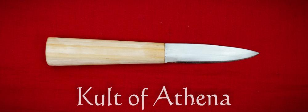 This small Viking age knife or seax replica is crafted in a configuration that we decided upon after long hours of research. It is very much like many of the knives that reside in museums throughout Europe and Scandinavia. Examples of this type of knife would have been found all over Viking age Scandinavia, Europe, and the Eastern-Rus territories as far as Novgorod. It is not an exact example of one particular knife, it is an amalgamation of many knives of the same shape and size. Knives like these were used every day for carving wood, peeling fruit, cutting rope, or trimming meat. It was the utilitarian belt knife of the period and as such would have been readily available in large trade centers such as Haithabu/Hedeby, Jorvik, and Birka.