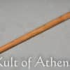 This hafted version of the Markland Merchants Raider Axe is a robust, real axe meant for serious reenactors and enthusiasts and was designed by a Viking reenactor who wished to make a higher quality and more accurate Viking axe available. It is crafted to a higher level of quality than many other axes with attention paid to fit and finish, such as the fitting of the axe to the stained Hickory haft being tailored to each haft by using the historical techniques of clamping and bending the points of the axehead into the wood to make it very closely fitted to the haft and highly resistant to movement. Please Note: we recommend using Butchers block wax to re-seal and moisturize the handles to keep them from drying out and shrinking over time. Replacement hafts will be made available in the near future.
