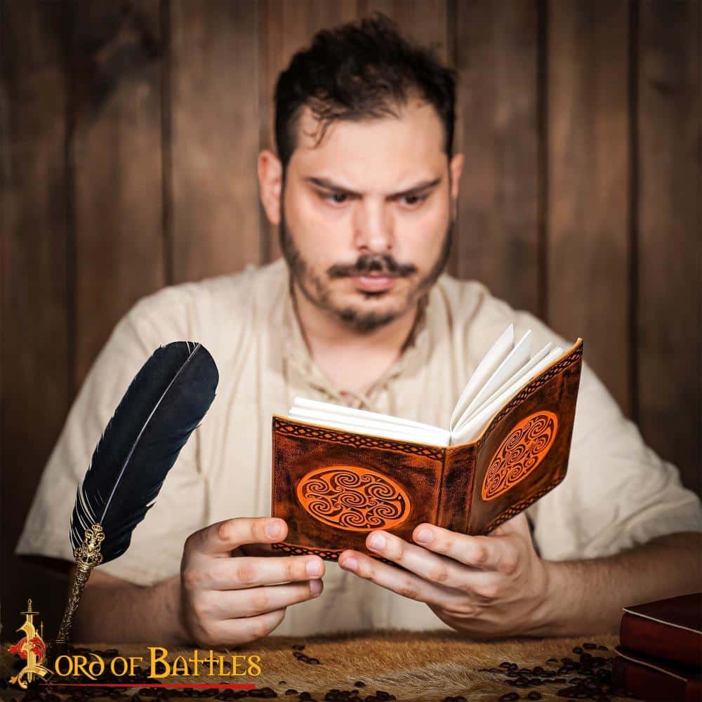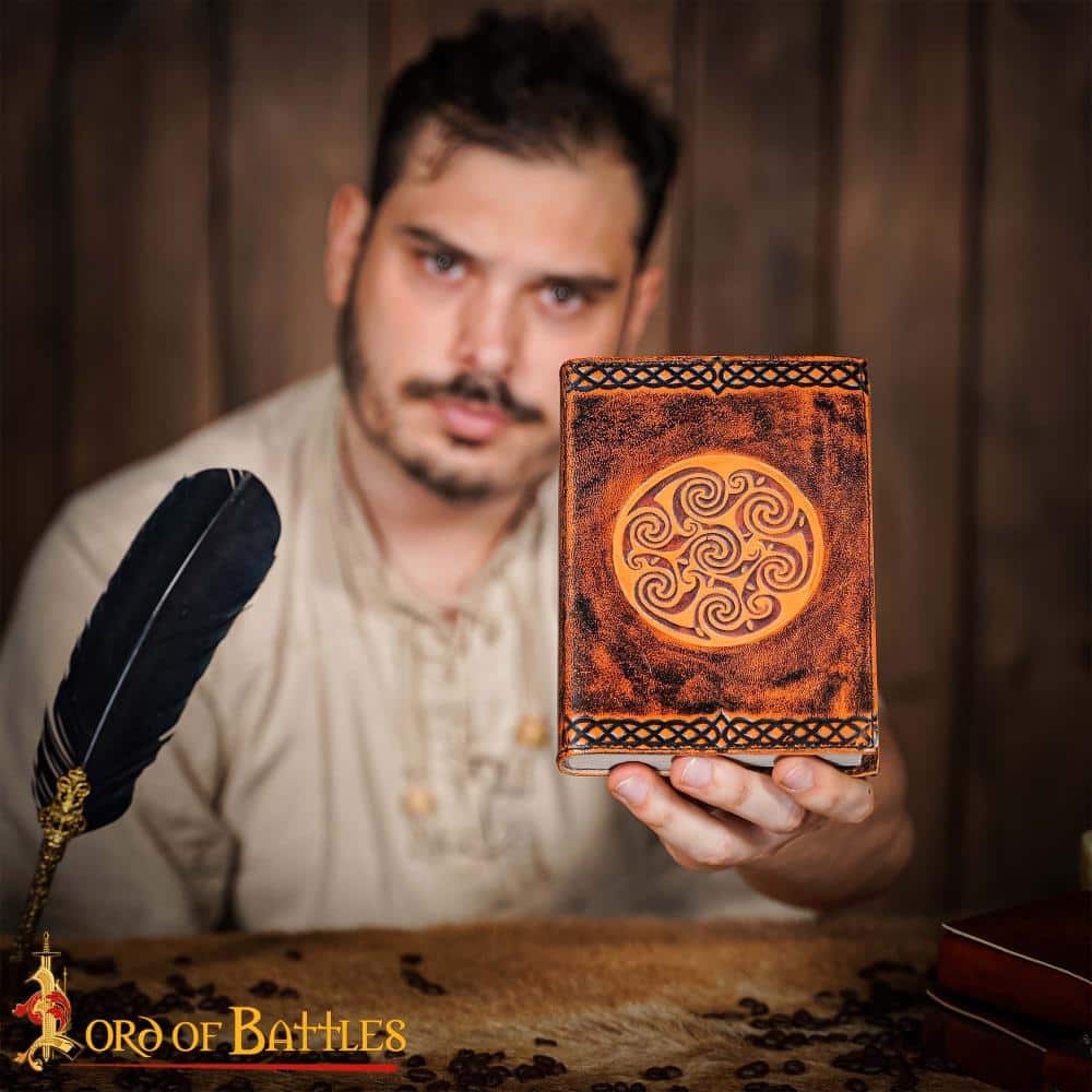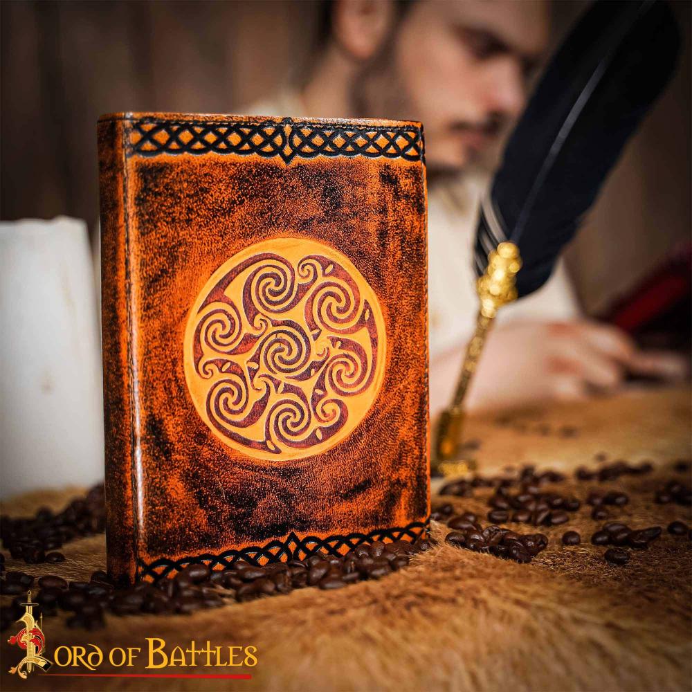 Medieval Celtic Leather Journal with Celtic Spiral Embossed Design – Lord of Battles