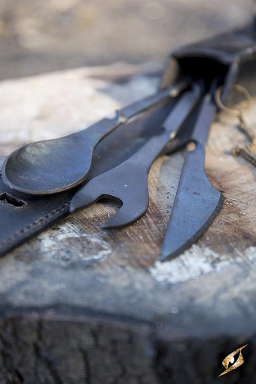 Medieval Cutlery Set with Leather Pouch Case – Brown