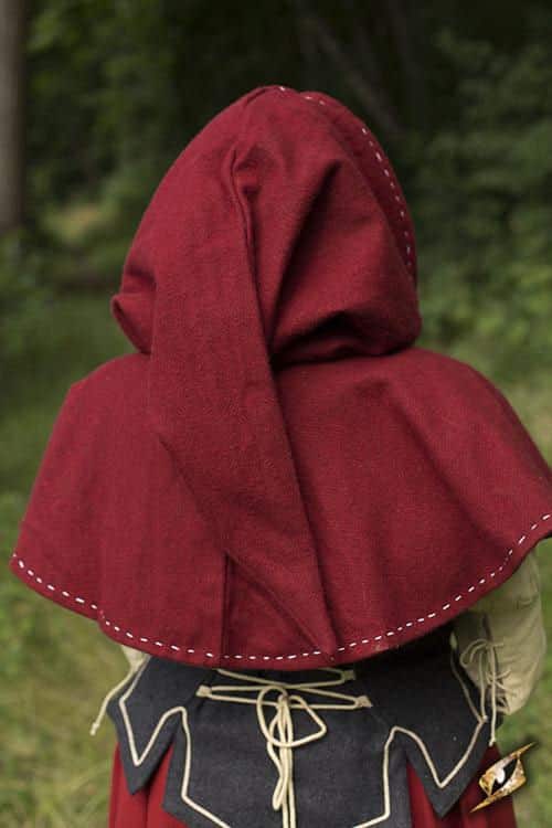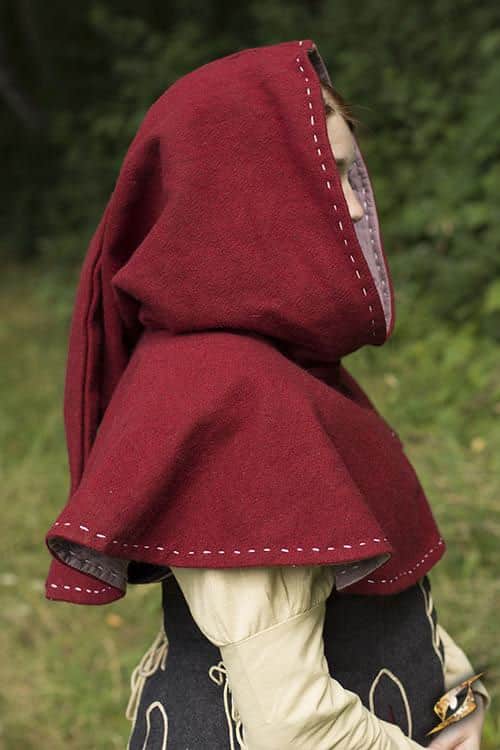 Epic Armourys Medieval Hood is a hood with a mantle and long hood tail. The mantle covers the shoulders, keeping the upper chest warm while the hood protects the head and face from harsh wind. Made from felted, blended wool and lined on the inside with soft cotton, this hood is comfortable and solid. Decorative stitches line the hood and hem, embellishing and adding great detail to a practical product.