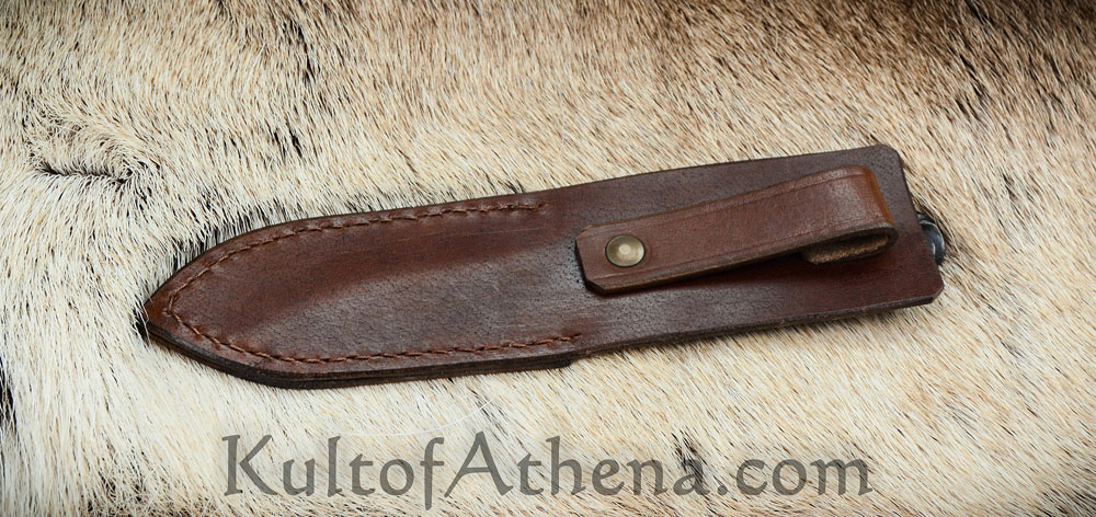 The knife comes with a leather sheath with a belt loop on the back for wear.