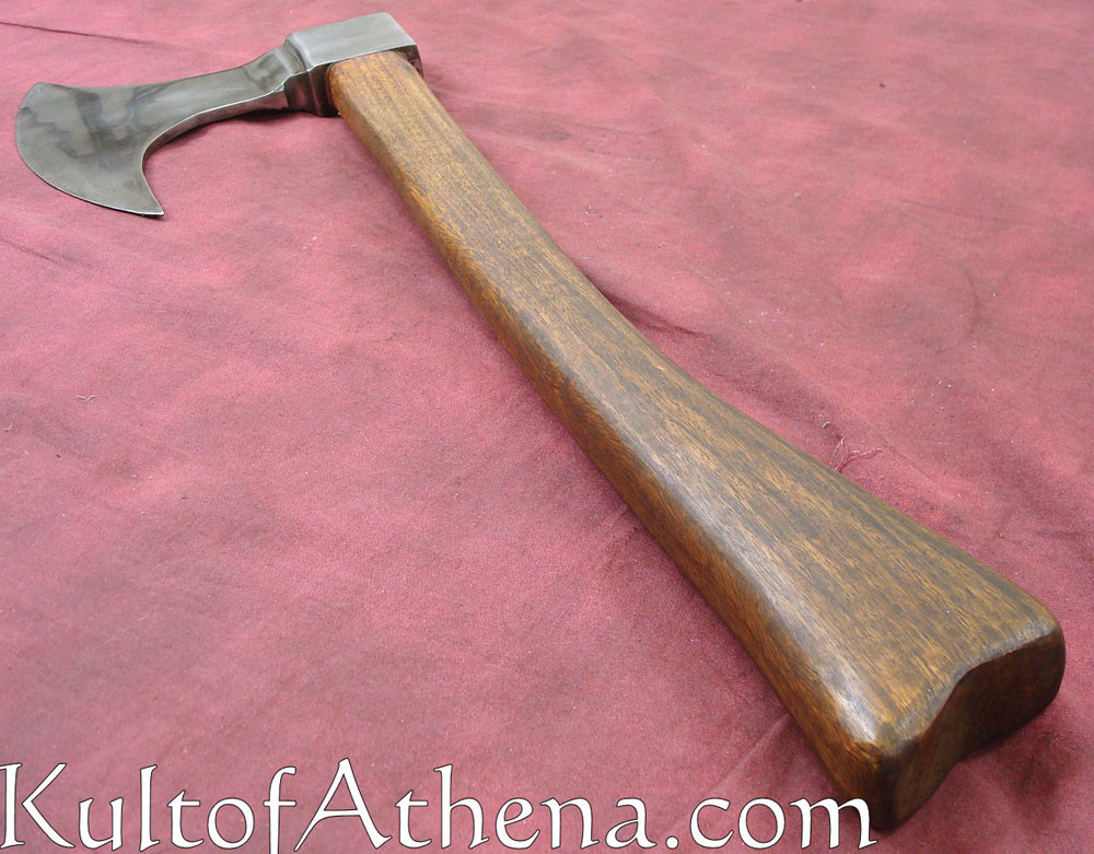 Very attractive wood haft and comfortable both to hold and swing. This axe is way too good to just hang on a wall!