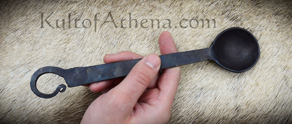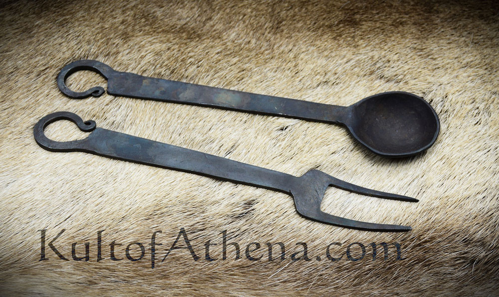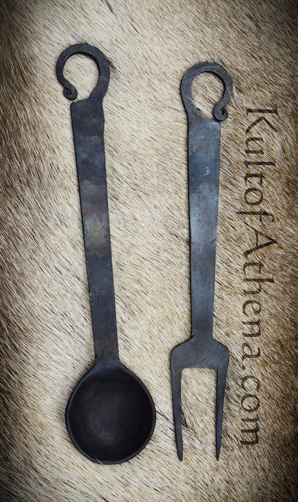 This iron Medieval Ladle and iron Serving Fork are forged from iron and are ready for feast table.