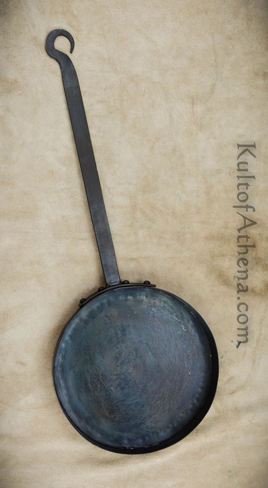 This Medieval Skillet is hand forged from iron with both riveted and welded construction. Stout and sturdy, this long-handled skillet is ready for your medieval kitchen or campsite.