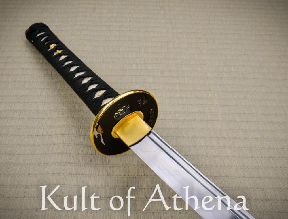 The Kawa Katana is of a particularly elegant design for a katana, taking its cues from the embellished swords of the Edo period which melded an elevated level of art and aesthetics with an entirely capable and deadly weapon. The tsuba features a calm river scene with detailing picked out in bold antiqued brass contrasted with bright gold hue finish and the rippled water themed fuchi and kashira are finished to match. The calmness of the quiet, rural river depicted is intended to visually show the inner peace and calm of the warrior within.