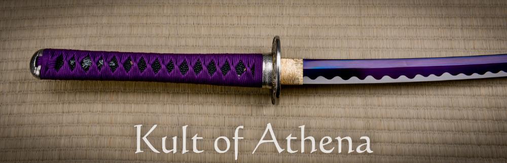 From the Musha Elite Collection, the “Chokkan” (Instinct) Katana has the upgraded blade of 1060 high carbon steel with a distinctive indigo-hue blued finish; it is well-tempered and ready to cut right from the box. The blade is solidly mounted into a hilt with a metal tsuba, fuchi and kashira that are beautifully silver finished. The tsuba features in lavish detail a warrior and a tiger with the warrior representing strength, discipline and strategic thinking and the tiger being a manifestation of agility, keen senses and raw power – the pair in totality representing the virtues of the perfected warrior. The wooden grip has panels of faux rayskin which are bound in knotted purple ito cord.