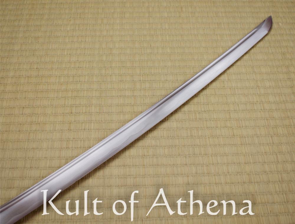 The resulting edge will be “sword sharp” not razor sharp. Our goal is to provide you with a usable edge for cutting practice that will hold up to some use and not require constant re-sharpening. In other words, we intend to provide you with a serviceable weapon, not a personal grooming implement. The service will not provide a completely bevel-less edge. To create that type of edge will necessarily scratch up the blade surface and we lack the machinery and time to provide a full re-polishing of a blade’s surface. A service of that nature would be significantly more expensive as a great deal more time would be required. We do not offer this type of service at this time.