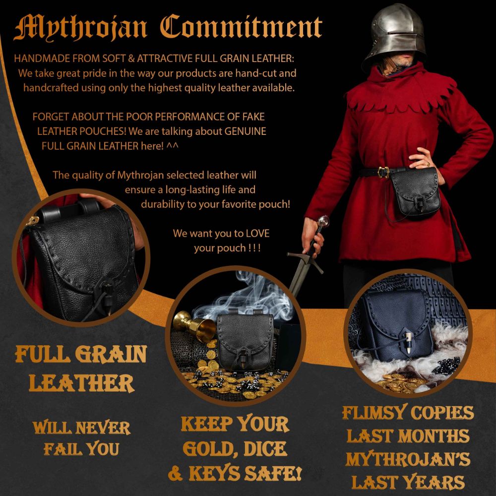 - ⭐FORGET ABOUT THE POOR PERFORMANCES OF OTHER FAKE LEATHER POUCHES! We are talking about REAL GENUINE LEATHER here! Our experience with the FILM INDUSTRY has forged our standards, and you can be sure that the quality of Mythrojan selected leather will ensure a LONG-LASTING LIFE and durability to your favorite pouch!