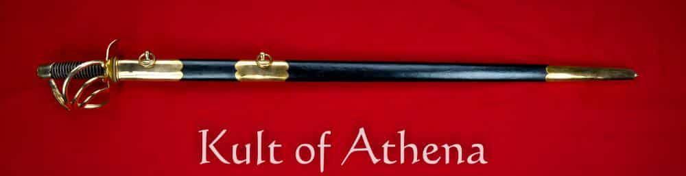 This AN XII Pattern Dragoon Sword has a blade made from unsharpened, tempered high carbon steel. The hilt is of brass and the grip is leather with inlaid brass wire. The blade bears the reproduced signature of Klingenthal – the state-run sword manufactory of the French Empire. The base of the blade and hilt are marked with the recreated stampings of the state blade inspectors. It comes with a wood core scabbard covered in black leather and with brass accents and hanging rings.