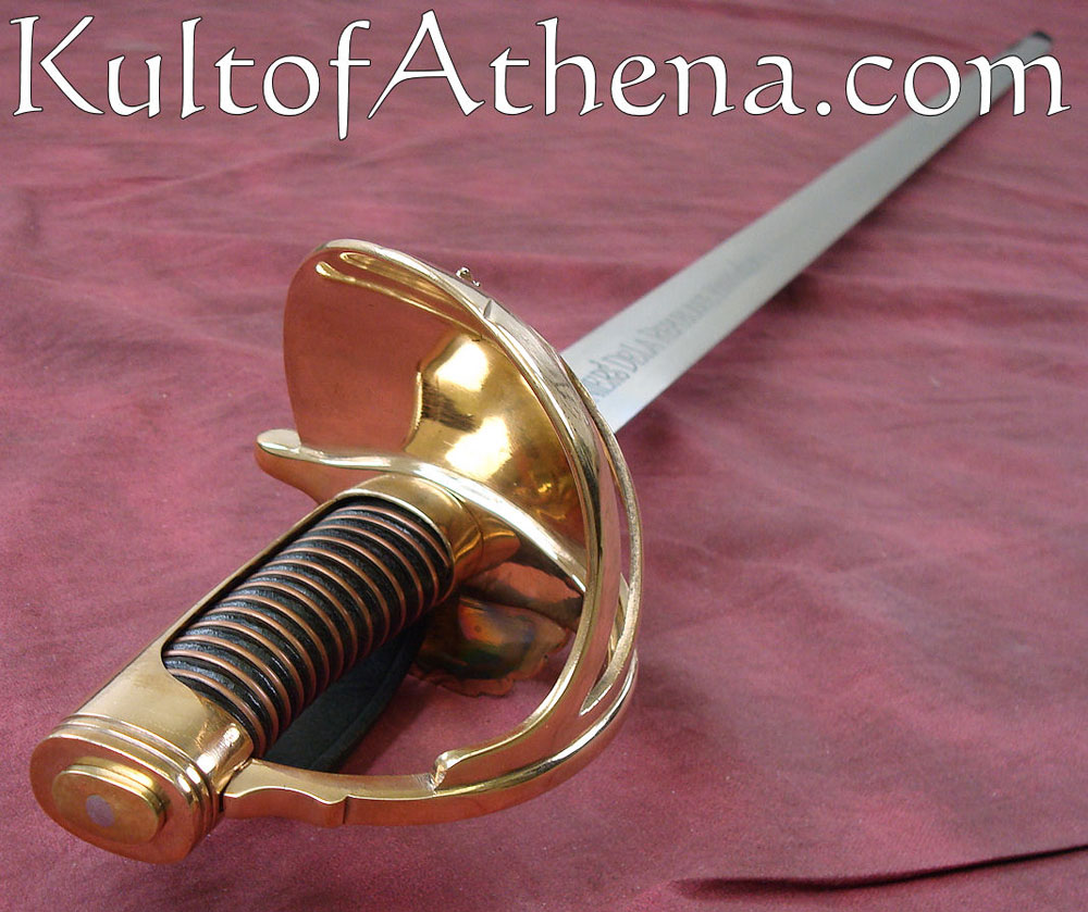 Equally intimidating to the man himself was his sword, the Carabiniers carried a straight saber – long and rigid enough to be used like a short lance in the charge, its thick spine and single edge insured that it hacked and chopped with foe-rending power. The long blade gave the cavalryman plenty of reach to strike not only passing enemy cavalrymen, but also easily reach the heads of infantrymen trying to strike at a distance with a bayonet. The hilts of the sword were cast in bronze to match the heroically-inspired armor of the man who wielded it.