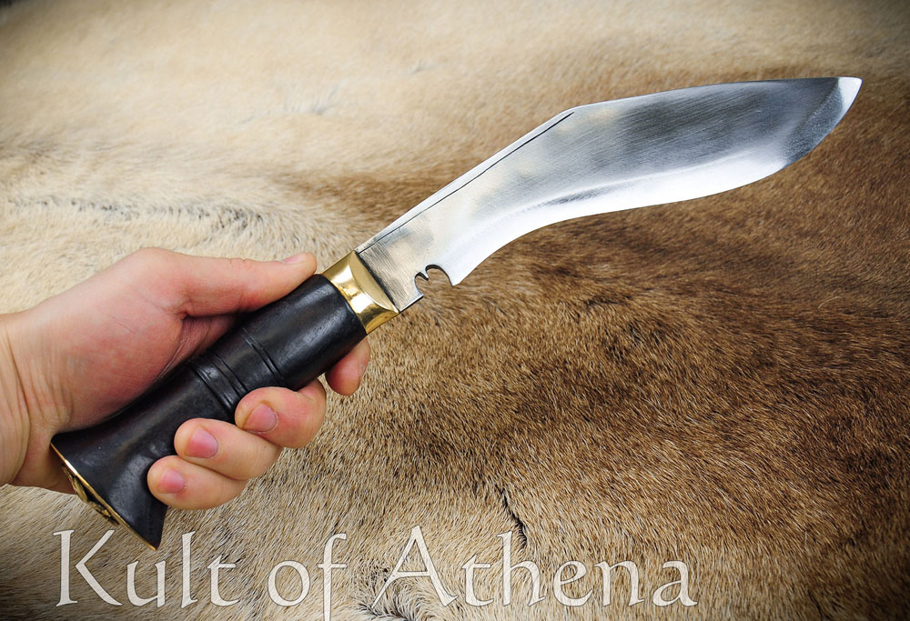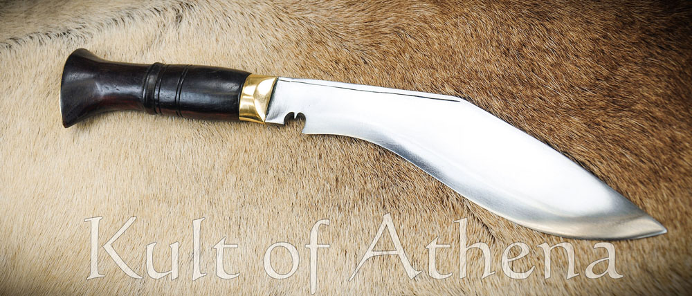 The Nepal Police Service Kukri crafted by differs from its military counterpart by having a broader blade, a rosewood handle and the crossed Kukri emblem on the pommel. Crafted by Ex-Gurkha Khukuri House has a blade of 5160 high carbon steel. The blade has been differentially tempered to make the edge steel harder than the body – this creates a blade that does not dull easily at the edge, yet is soft enough so that it can flex to absorb shock and prevent breakage due to being too hard and brittle.