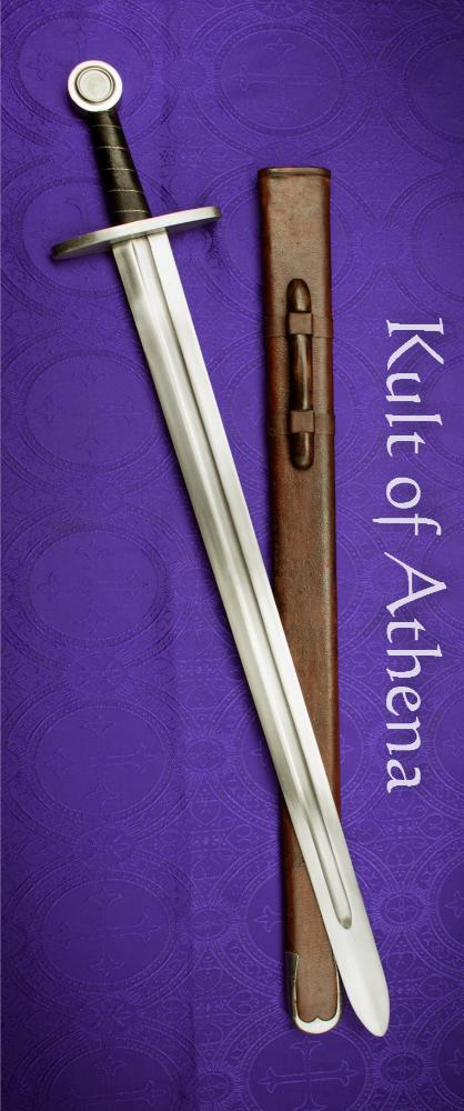 This Norman sword belies its Viking heritage; The blade with a shallow taper and wide fuller has the form of its ancestor swords. The crossguard and wheel pommel are simple and utilitarian in form. The wide blade with heft makes the Norman sword a brutal hack and chop sword.
