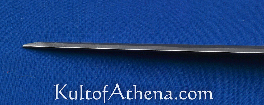This Norse spearhead has a long and narrow form which is well-suited to a throwing spear. The narrow form is idea for deep and powerful piercing strikes powered by a stout throw and the weight and momentum of a long spear in flight. Hand-forged from EN45 high carbon steel, the spearhead is ready to be mounted onto your own tapered haft. The diameter of the socket is approximately 1 1/8 (28 mm). Pre-drilled holes allow for you to secure the spearhead with your own pin or screw. This additional mounting hardware is not included.