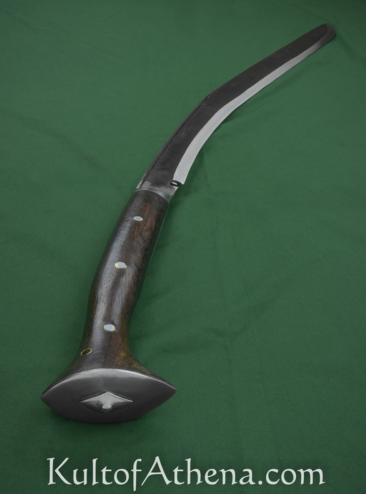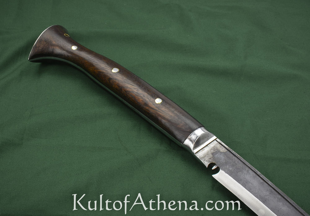 Some other things I’d like to mention, it did come sharp which was very nice. after the first session I didn’t really notice any edge wear or warping of the spine. the scabbard looks very nice but does hold onto the blade a little tightly making it difficult to draw and put back. the grip was a little disappointing and a little confusing. the rivets for the handle scales where completely flush on one side but on the other side they where not and stuck out a noticeably distance. There where a few gaps and inconsistency with how the grip its self was assembled but not anything that would compromise integrity. overall it was nice but i think more mass should be put near the hilt that might fix whats happened, I’m not sure though it could be a list of reasons why it would have broken there. I can’t recommend it for hard use which seems to be this kind of blades niche.