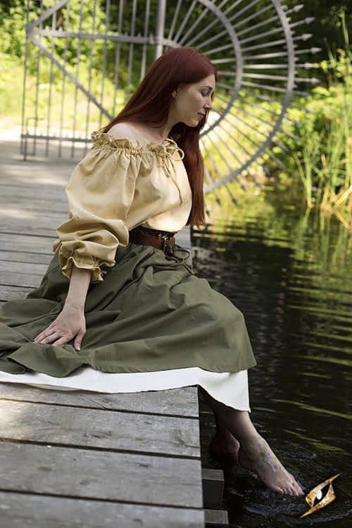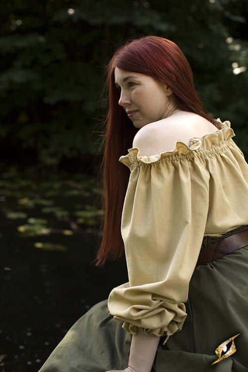 Epic Armourys Pirate Shirt is a loose fitting garment tailored for women, designed for both comfort and style. Reaching from the shoulders down to the upper thighs, this medium cotton shirt is inspired by late renaissance and early baroque design. Its raglan neckline can be worn tightly around the neck or open to expose the shoulders, simply by adjusting its cotton drawstring. The sleeves are full length and designed to give a full, loose look often associated with swashbucklers, pirates and musketeers. Tie the sleeves at the wrists using their own drawstrings to keep them out of the way.