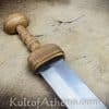 I imagine because I paid extra for the sharpening service, I received one of the better of the lot. It is far from perfect but at this price point it is far better than some I have purchased over the years for a higher price. No blemishes, the wood parts perfect condition. Fit on the scabbard is not perfect but at the cost its is far better than you’ll find elsewhere. Looking at it at an angle in the right light it looks like some poorly restored classic cars I’ve seen, waves and ripples in the metal. But only the discerning eye would catch such imperfections. I will commit to say from now on I will purchase my blades from the Kult of Athena because I feel they have a far higher standard than I would find anywhere else and at an extreme value. Good health to you brothers