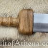 Like the previous review I will say that based on “bang for buck” this Pompeii Gladius is an excellent purchase. Hands down, for the cost, it is fantastic. I ordered this item two weeks ago and received it today, during the covid pandemic, etc… assuming shipping issues it came rather quickly, however one of the sharpeners at kult was out sick with covid so I opted to receive the blade unsharpened and thus it came with the standard edge from the Indian manufacturer. The blade, unsharpened, is a butter knife. If you don’t opt for the sharpening service, you will get a fat flat edge, and it will be a little heavy as a result. That’s fine if you aren’t the type to try and cut mats or bottles. Safer for the kids, etc. you can sharpen later but be aware… otherwise, the fit and finish is great. The symmetry of the blade is as portrayed. The weight is evenly distributed and is thus a little tip heavy, no distal taper at all without sharpening. But are you actually planning on joking in a shield wall? The only wall mine is likely to see is the living room wall, if my wife allows ?