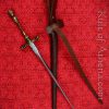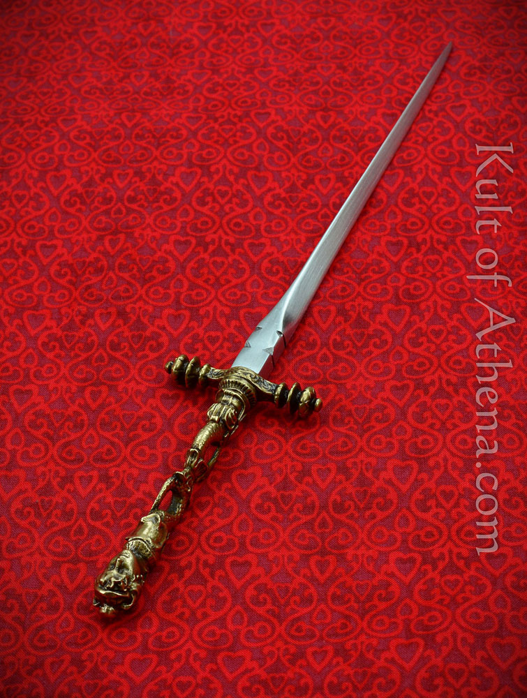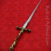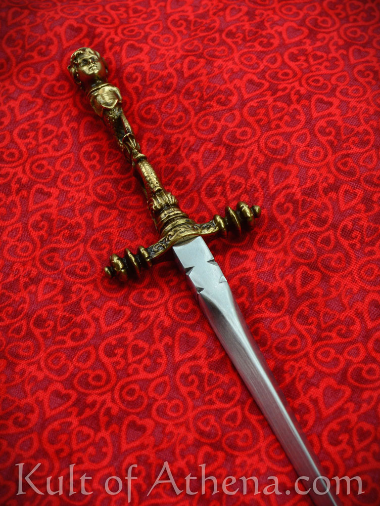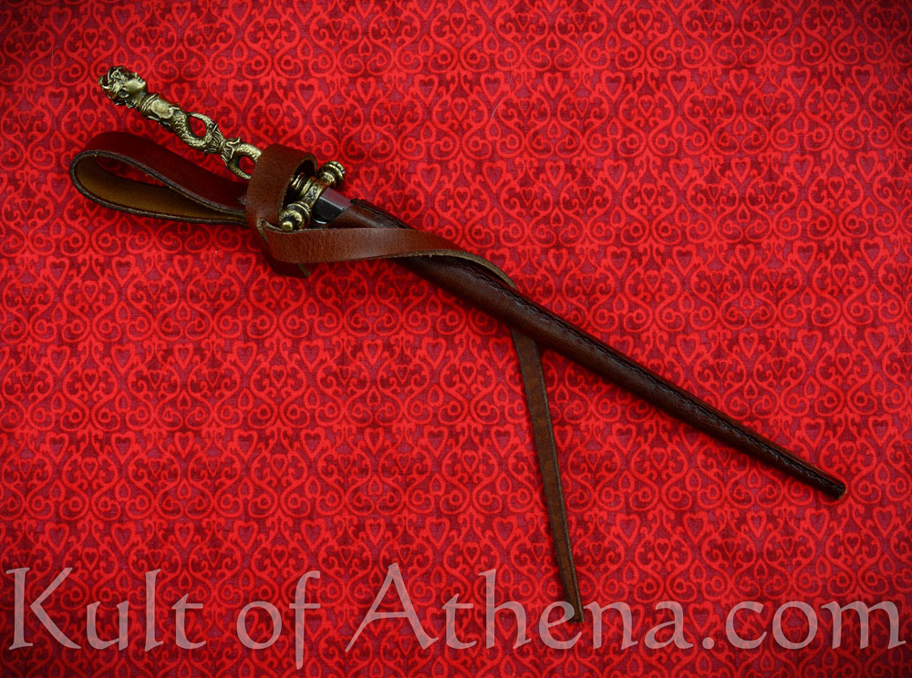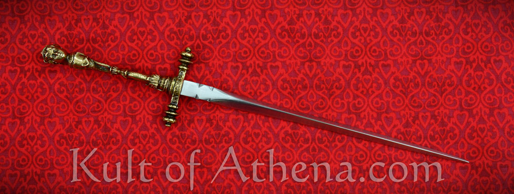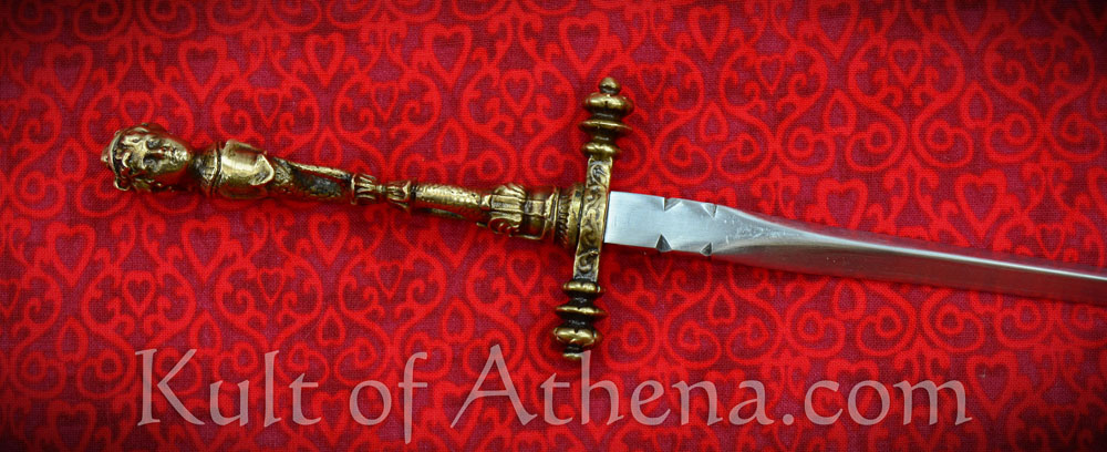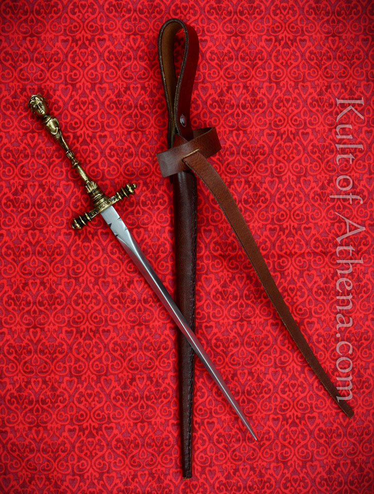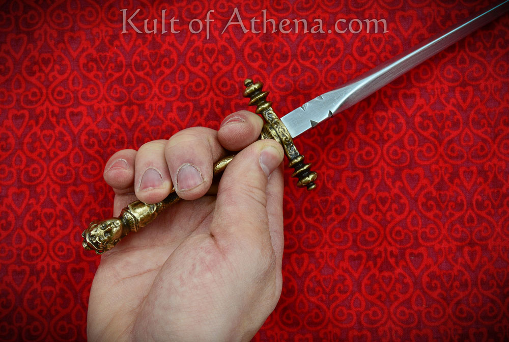 Stout blade but the hilt is noticeably crooked. Fits nicely in the thick, if low quality leather sheath.