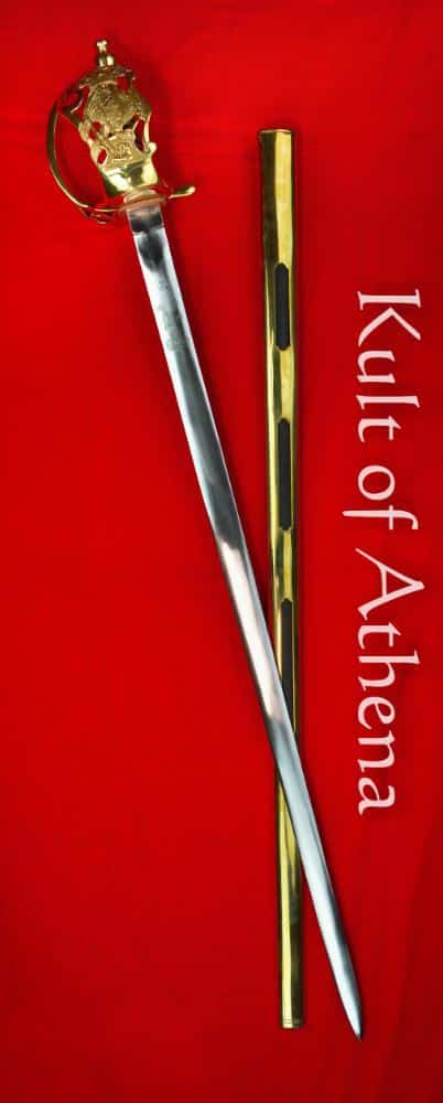 Pretty face. Ugly sword. Same problem as usual. Good looks, but the taper and handling dynamics are way off. Elliptical sword blades were popular for almost 200 years of pallasches (basket hilted straight cavalry swords). Goes back to the famous German horse swords adapted from the dutch Walloon in the 1640s. Too much metal in the hilt also. These were built sparingly in the originals.