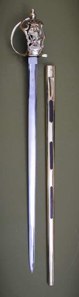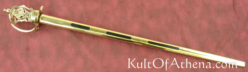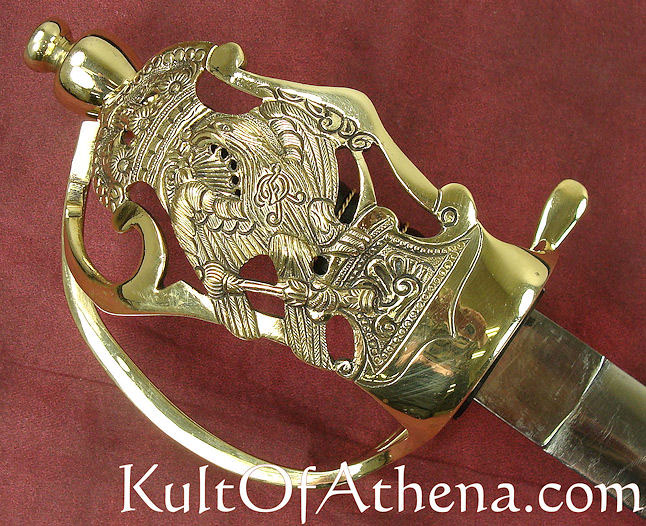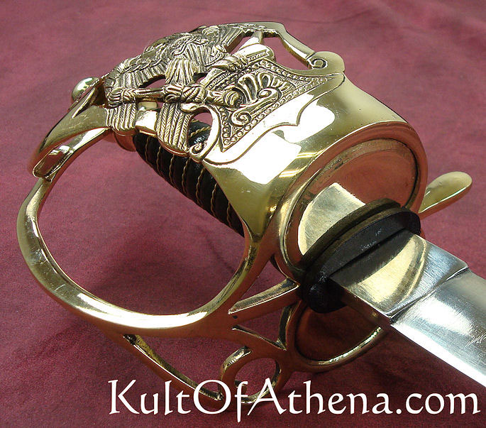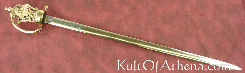 Pretty face. Ugly sword. Same problem as usual. Good looks, but the taper and handling dynamics are way off. Elliptical sword blades were popular for almost 200 years of pallasches (basket hilted straight cavalry swords). Goes back to the famous German horse swords adapted from the dutch Walloon in the 1640s. Too much metal in the hilt also. These were built sparingly in the originals.
