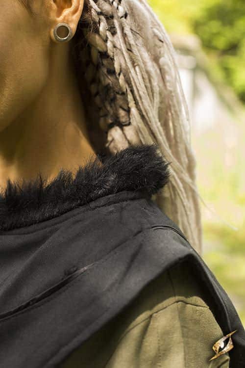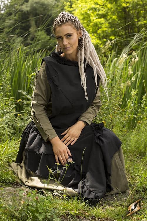 Epic Armourys Raven Dress is a sleeveless overdress with a polyester fur collar and large window armholes. Designed to be pulled on top of an inner slip such as a Peasant Dress or Basic Dress, the Raven Dress adds layering to the costume while still allowing you to show-off your entire costume. Made from comfortable medium cotton, and embellished with a tulle-like bottom hem, this dress is designed to be both comfortable and impressive.