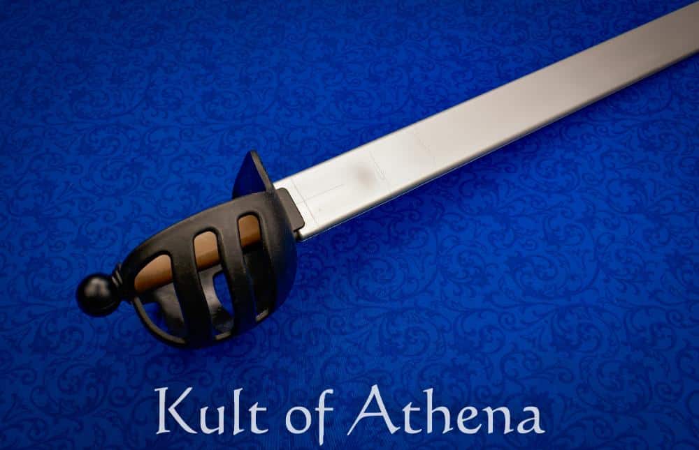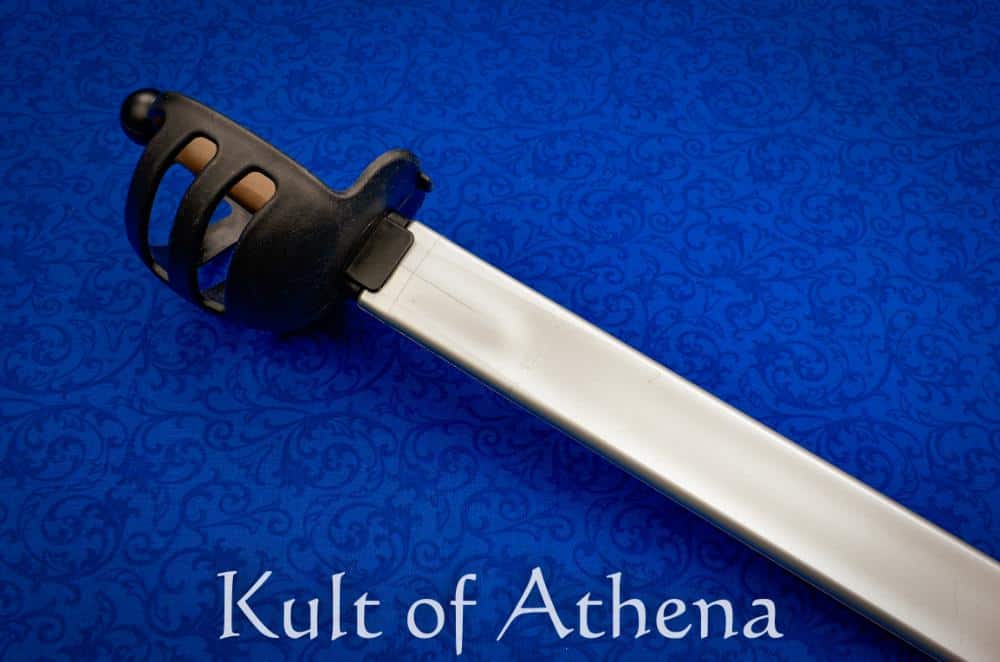 Dependable, Durable and affordable – the Red Dragon Cutlass is a great choice for an impact nylon trainer for western martial arts and sparring. Built as a versatile practice tool, it works well for drills and pell work much like a traditional wooden waster, while also being suitable for controlled sparring when appropriate protective gear is worn. The blade is engineered to flex in the final third toward the tip, allowing for safer thrusting without the overly soft or “whippy” sensation common in many synthetic trainers. For added strength, the blade-to-tang connection—often a weak point on plastic practice swords—is reinforced with a steel rod that runs the entire length of the grip. This reinforcement also eliminates the handle flex often found in polymer trainers, giving the weapon a firmer and more realistic feel.