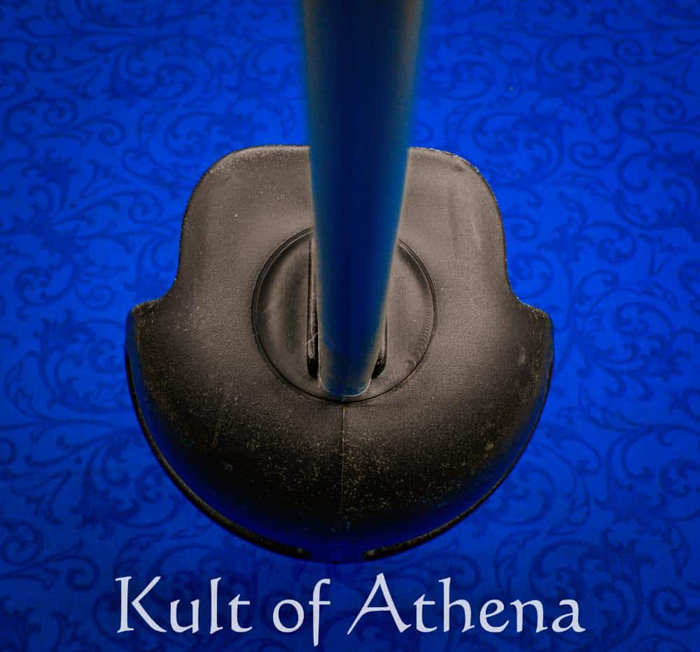 The guard is molded from tough nylon and fitted with rounded, ball-shaped quillons designed to improve safety during sparring. Their broader, smooth surfaces help reduce the chance of puncture injuries during contact. The slide-on grip is made from a thermoplastic elastomer that closely mimics the feel of leather wrapped over wood. It offers excellent shock absorption while maintaining a secure, responsive grip without feeling overly soft. The pommel is also made from nylon, contributing to the sword’s balance while making pommel strikes safer than those delivered with metal fittings. Inside the pommel, a molded brass nut ensures a tight metal-to-metal connection with the tang.