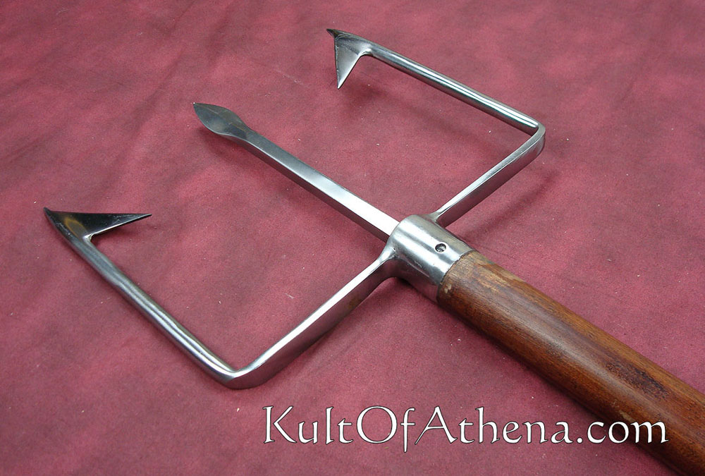 In Ancient Rome Gladiators were usually equipped in one of several standard ways. Each gladiator style was know by it’s own name, and in some cases were based on a conquered but respected enemies. One of the most popular was the ”Retiarius”. The Retiarius Gladiator fought with a trident and a net.