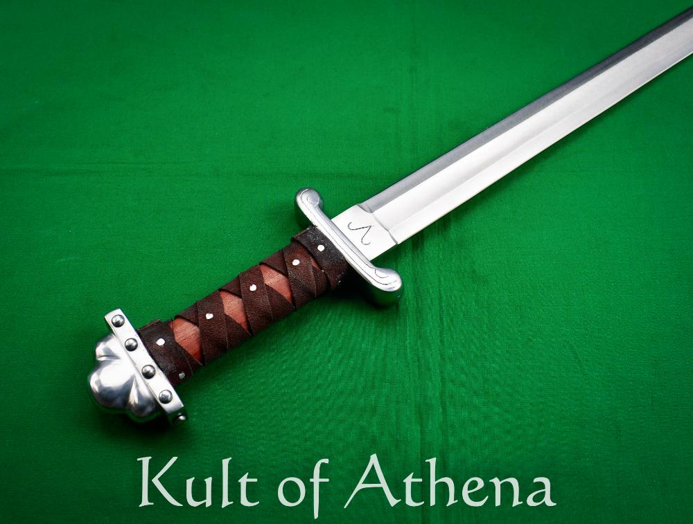 WOW! Now that’s a sword! ……sort of. It’s rude,it’s crude and looks and feels like it was made from the blade of some sort of farm implement or the leaf spring from a truck. That being said, it’s probably pretty authentic,too. Not every man who possessed a sword had the finest,thinnest,most polished work of art in his hand. I’d bet most of them had something more like this indestructible massive cleaver with them. If you’re looking for fine art then keep looking. If you’re in the market for the real deal,then this is the one. Like they said; You can almost hear the waves crashing as you wade ashore.