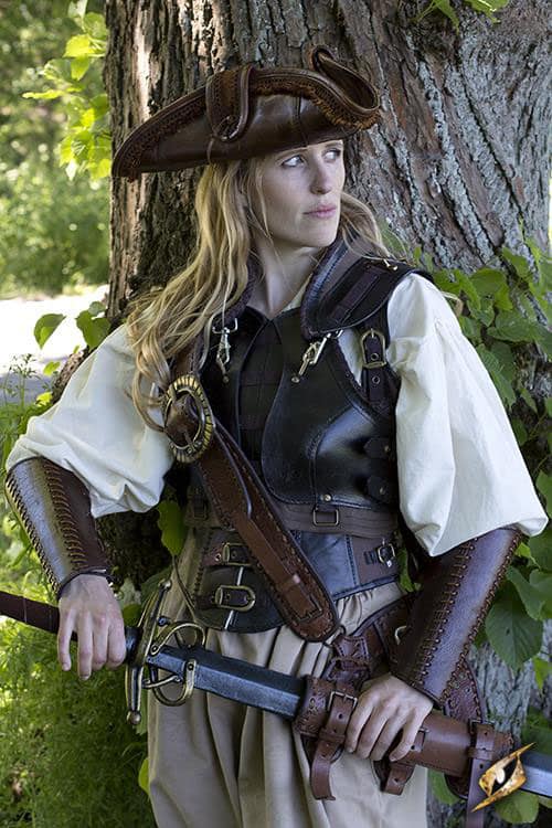 Epic Armourys Rogue Corset is a leather underbust designed to protect the abdomen while making you look and feel confident surviving the cut throat streets. The corsets fit is highly adjustable thanks to the leather cord lacing down the back, as well as the canvas straps along the sides, shoulders, and along the front. The leather bodice is embellished with canvas accents against the full-grain leather. With regular leather care, you can expect the Rogue Corset to last a long time. Use this corset to create an intimidating statement or add some interest to your kit.