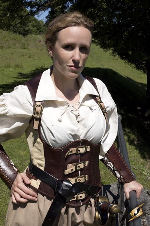 Epic Armourys Rogue Corset is a leather underbust designed to protect the abdomen while making you look and feel confident surviving the cut throat streets. The corsets fit is highly adjustable thanks to the leather cord lacing down the back, as well as the canvas straps along the sides, shoulders, and along the front. The leather bodice is embellished with canvas accents against the full-grain leather. With regular leather care, you can expect the Rogue Corset to last a long time. Use this corset to create an intimidating statement or add some interest to your kit.