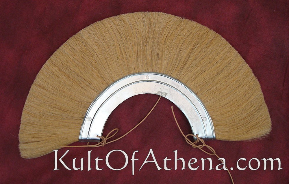 This roman crest is made to attach to a Roman helmet with a crest attachment slot and a crest holder. Can be mounted front to back or side to side depending on the holder used. Wood and steel crest box with natural white horse hair.