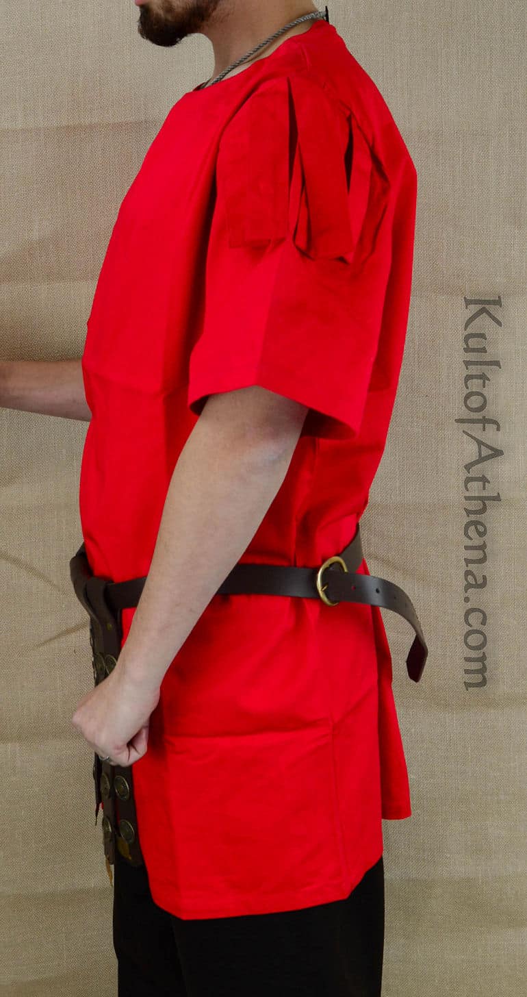This Roman Tunic with its shoulder Pteruges can serve as a light subarmalis. It is crafted from durable cotton.