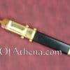 The sheath was well constructed and solid, but was somewhat carelessly put together. The guard does not sit flush against the mouth of the sheath, and some of the fittings are off center, but the brass fittings are strong and tight and nothing rattles or moves. The leather is nicely stretched over the solid wood core, and feels smooth with no wrinkles.