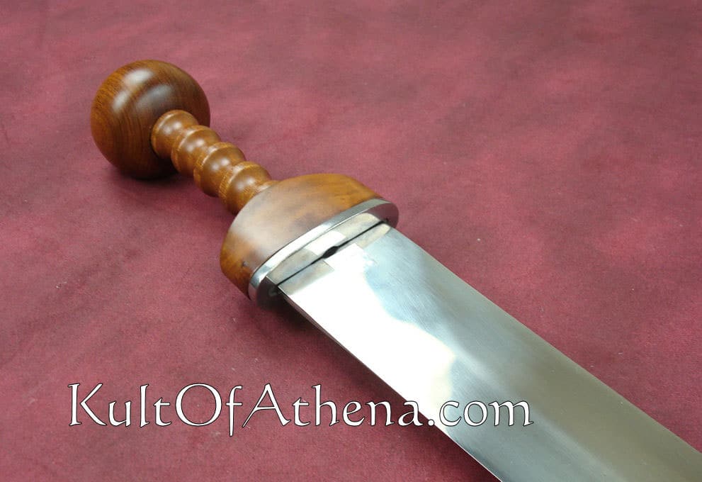 An Excellent Gladius The gladius itself is very well constructed. The hilt is rock solid: the pommel and guard are maple, while the handle itself is ash – this makes for a nice, subtle contrast. A steel plate covers the base of the guard. The whole hilt is held tightly together by a brass nut.