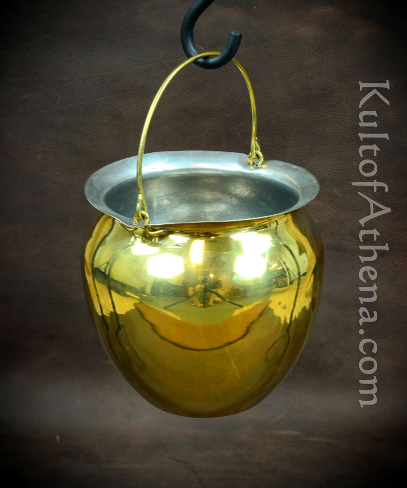 This Roman Situla Cooking Pot is crafted from brass and lined with tin on its interior just as originals were.