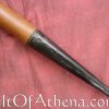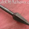 The Con – Javelin wooden shaft broke right at the screw fixture on about the 10th throw. There is no tang, just two short 1/2 in (modern) screws that are painted over that affix the conical steel head over the tapered shaft.