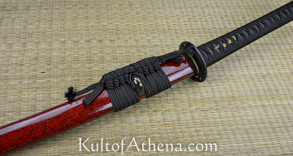 Not sure This is my first katana purchase so I’m not sure what to expect as far as quality for the price. I can say that, other than a loose fuchi and minor flaws on saya, the blade is straight and everything else is tight. The saya is actually a dark burgundy with black specs smooth lacquered rather than flat. I actually like the darker color but picture is quite different. Even shinning my 1000 lumen flashlight on it doesn’t make it look as red as in pics.