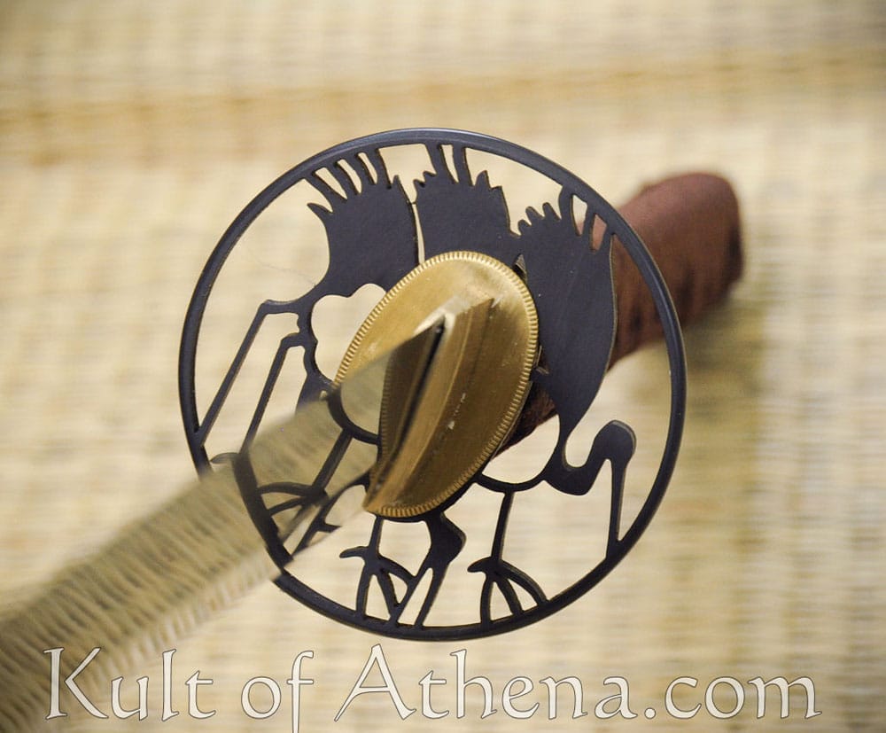 This Ronin Katana has a sharp, 1060 high carbon steel blade that has been through-hardened. The blade was crafted after the dotanuki style, which emphasized function over aesthetic form. It is characterized by katana blades that are both wide and thick-spined for maximum cutting damage and durability. Its name is a testament to this ability, as dotanuki means sword that cuts through torsos.