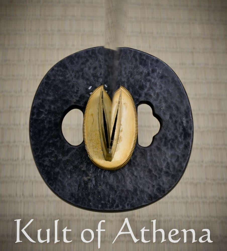 The tsuba, fuchi and kashira hilt fittings are crafted from iron and feature the simple stylings and the iconic dual-ring favored by the great swordsman Musashi. The habaki and seppa are brass and the wood tsuka grip is wrapped in rayskin before being overlaid with knotted synthetic silk tsuka-ito cord. A pair of brass menuki are fitted within the binding grip cords.